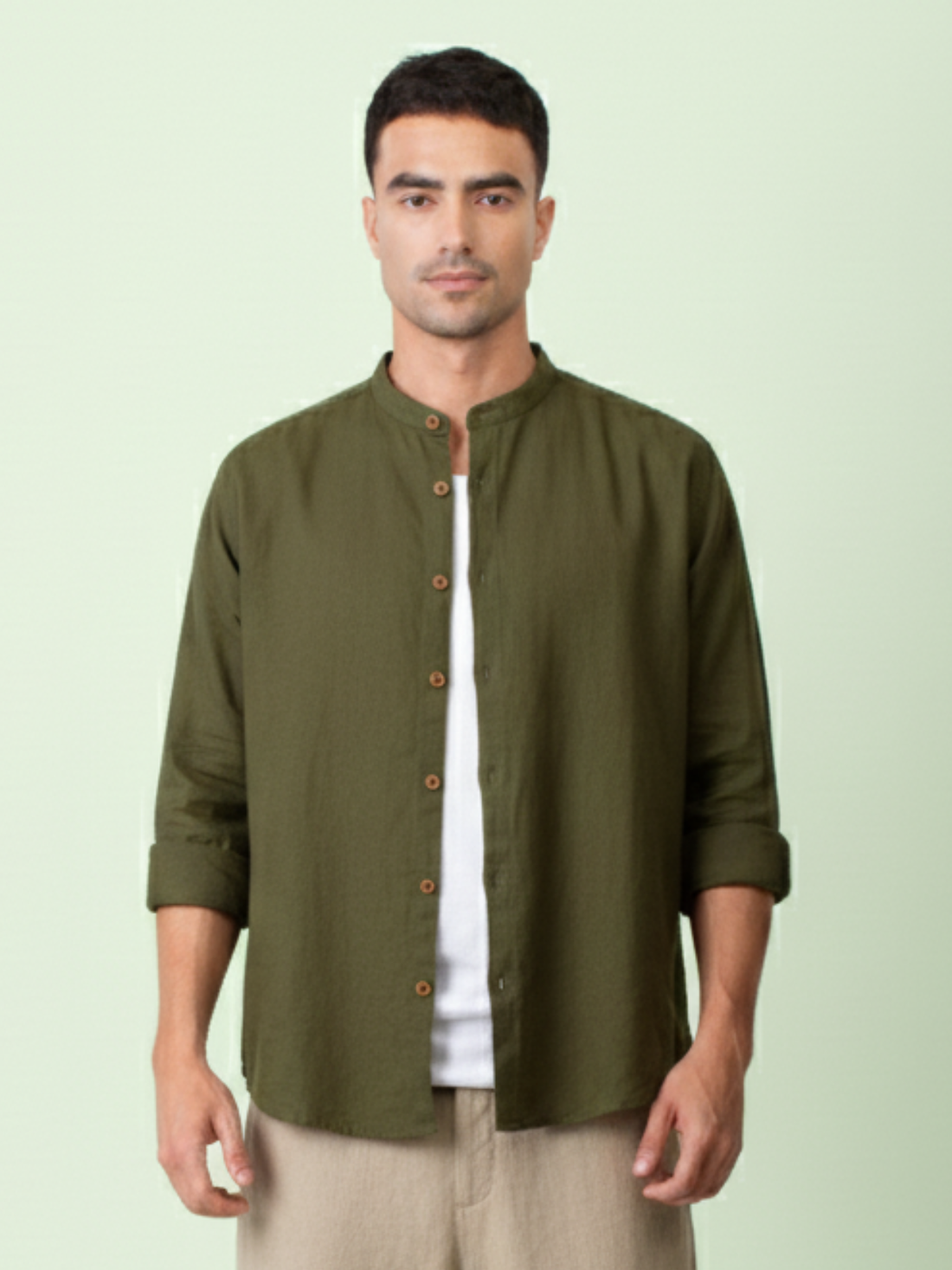Kaza - Olive Shirt with Mandarin collar