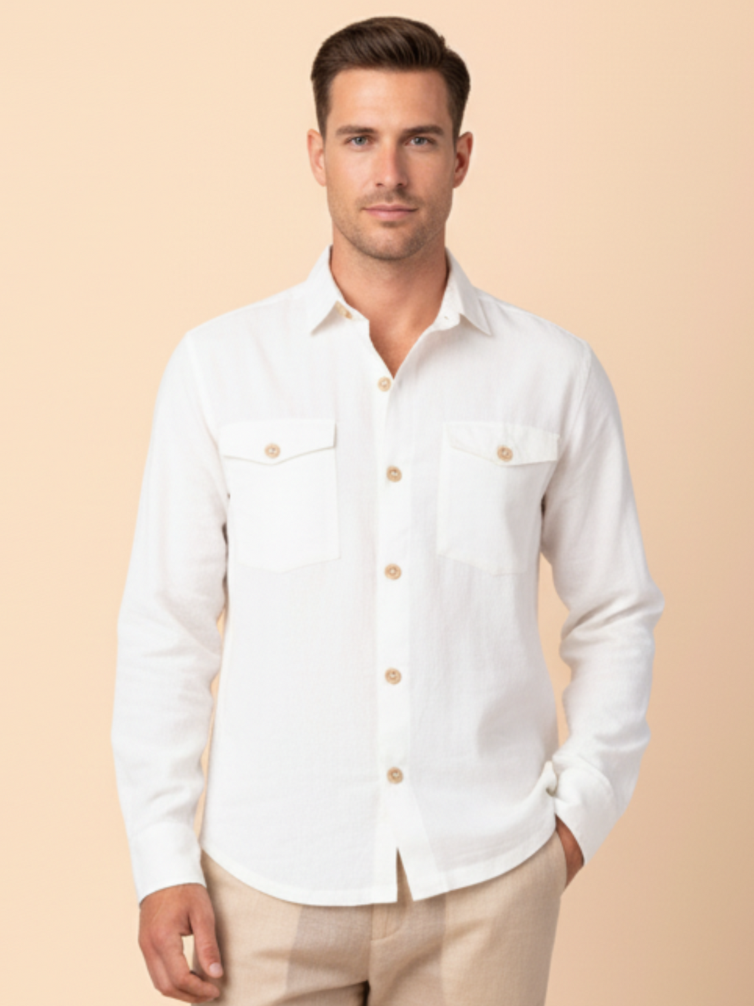 UNISEX STYLE - DESIGNED FOR ANYONE Classic shirt collar paired with natural wooden buttons and...