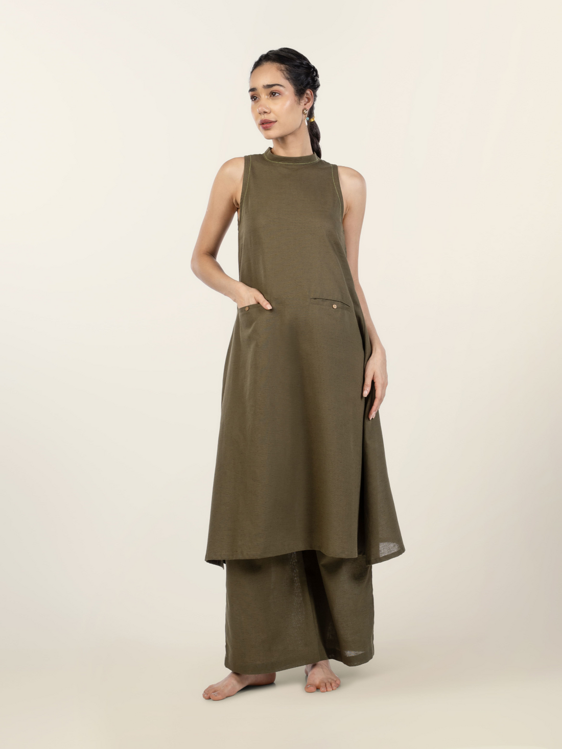 Redefining effortless sophistication, this olive cotton-linen co-ord set blends timeless design with everyday comfort. The...