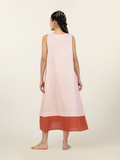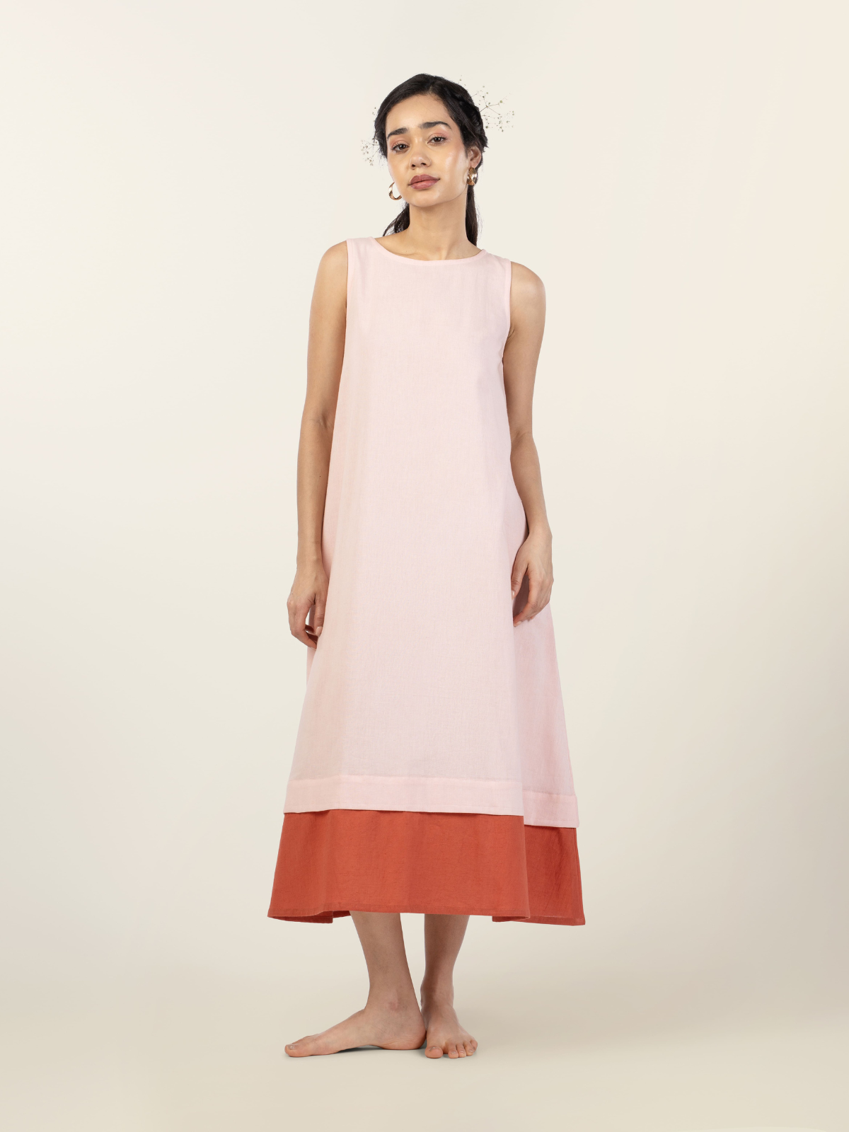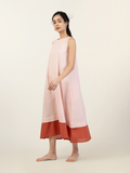 Breezy and carefree, this midi-length dress is designed for easy garden days and relaxed moments. With a sleeveless cut and a simple round neck, it offers effortless comfort, while the flowy silhouette keeps it light and breathable. The layered hem in a contrasting color adds a playful touch, making it perfect for sunlit strolls, brunches, or a quiet afternoon outdoors. A versatile piece that feels as fresh as the outdoors it’s meant for.