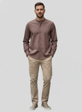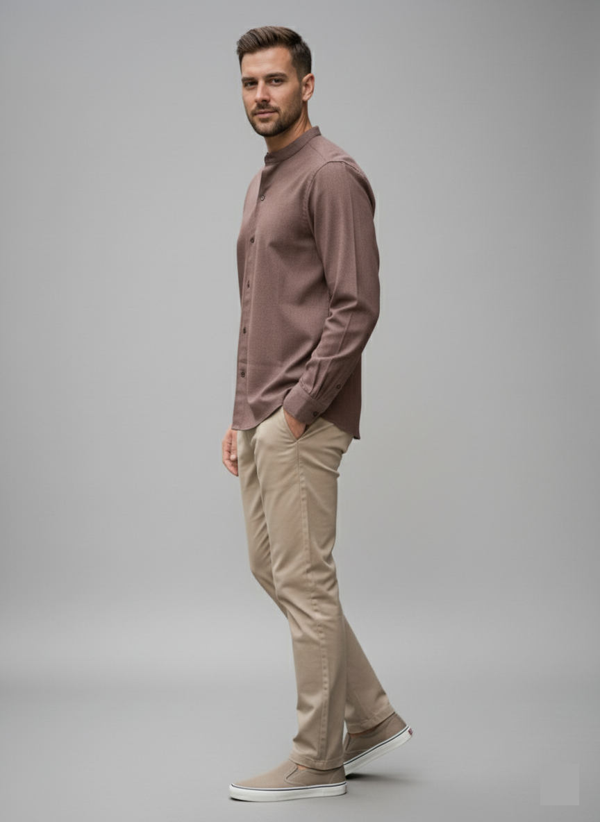 Elevate your everyday wardrobe with this cotton-linen shirt featuring a Mandarin collar for a clean, modern edge. Full cuffed sleeves and wooden buttons add subtle, natural detailing, while the regular fit ensures comfort and ease of movement. Perfect for casual outings, office wear, or semi-formal occasions, this shirt combines timeless style with wearable versatility.