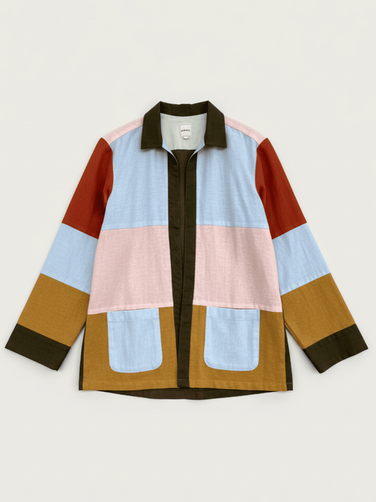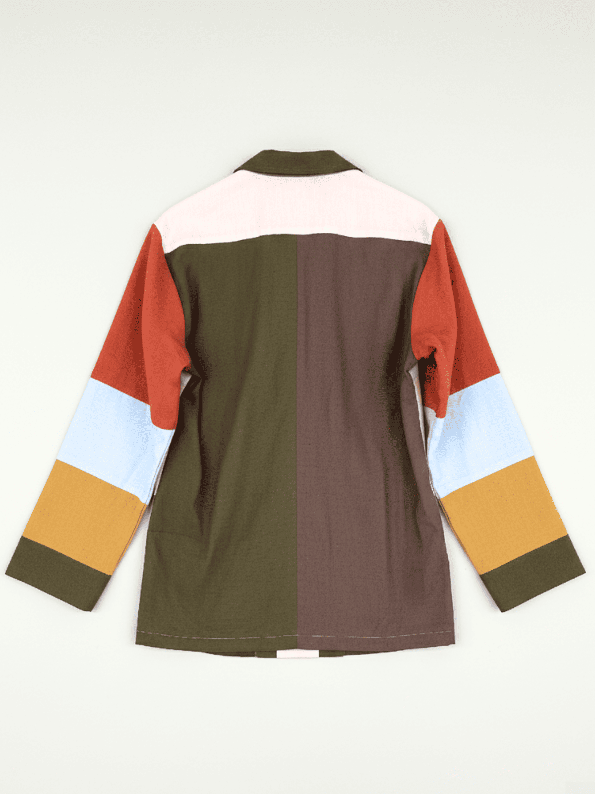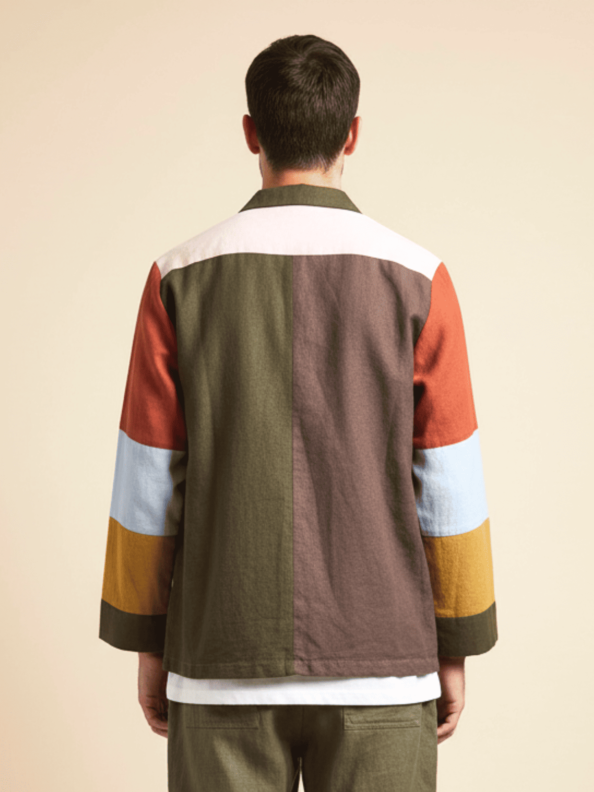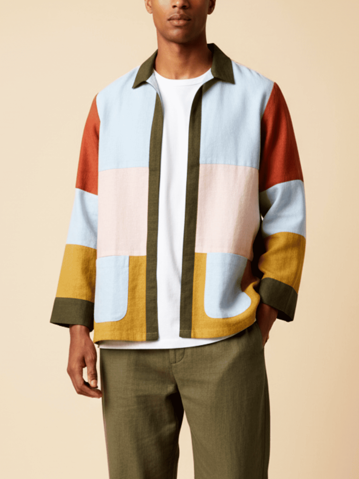 Crafted from breathable cotton-linen, this colour-block jacket seamlessly blends comfort with contemporary design.