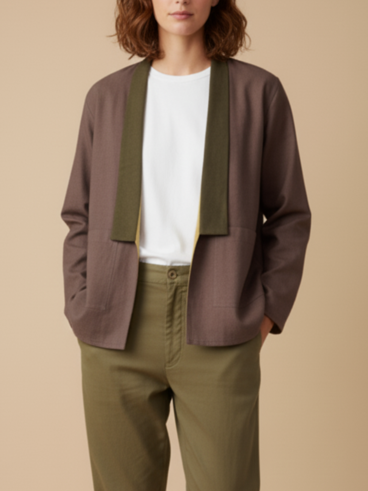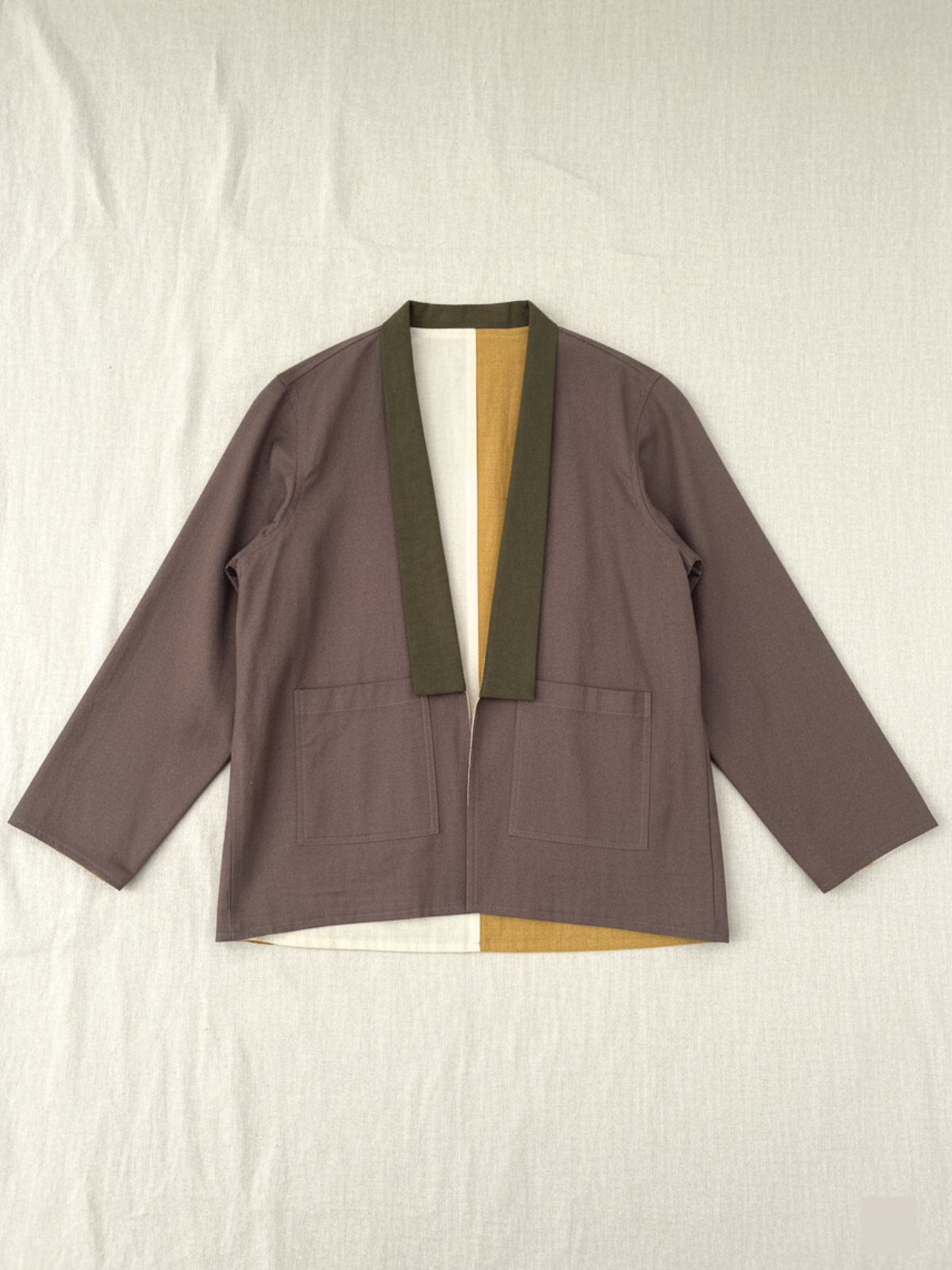 A statement in versatility and craft — this reversible jacket is made from breathable cotton-linen fabric, offering two distinct color stories in one piece.