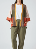 Made in soft, breathable cotton-linen, this upcycled colour-block kimono features thoughtful color placement that brings balance and quiet character to the piece.