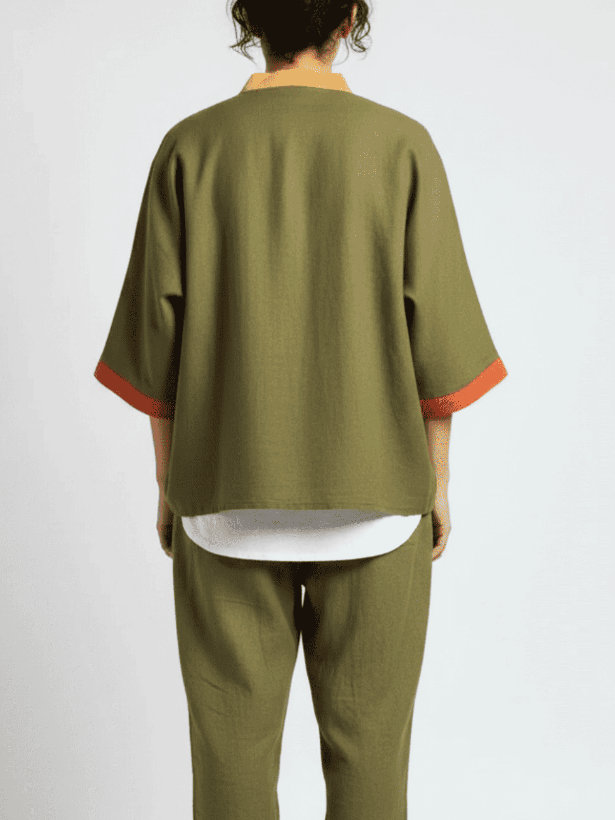 Inspired by the classic kimono silhouette, it drapes effortlessly—structured enough to feel polished, yet relaxed enough for everyday ease.